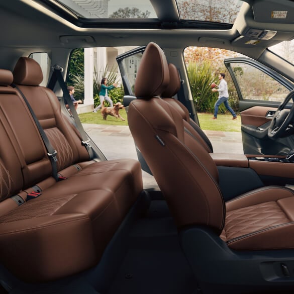 Rogue seats up to five in luxury with available quilted semi-aniline leather-appointed seats, Tri-Zone Automatic Temperature Control, generous leg room, and a Dual Panel Panoramic Moonroof.